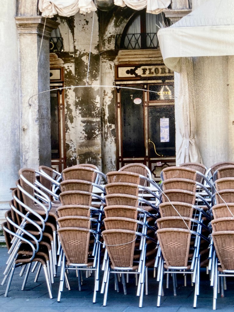 The visitors moving through the exhibition are led to participate in a movement of astonishment, wonder, and at the same time repulsion that arises from their confrontation with Massimo Saretta’s photographs. The places that the people who live in these particular towns recognize, which are Veneto’s symbols, are transformed before our eyes into something unreal. It is almost impossible to recognize Rialto Bridge at first glance, completely exposed, as if it were an exercise of architectural reconstruction. Striking are the portraits of the places where we usually find ourselves company, such as bars, restaurants, squares, sharing an aperitif or lunch. Even less recognizable are those spaces where people typically go for entertainment purposes such as theatres and opportunities for cultural aggregation like museums and historical centers. All deserted, abandoned, uninhabited, becoming a new symbol of danger.