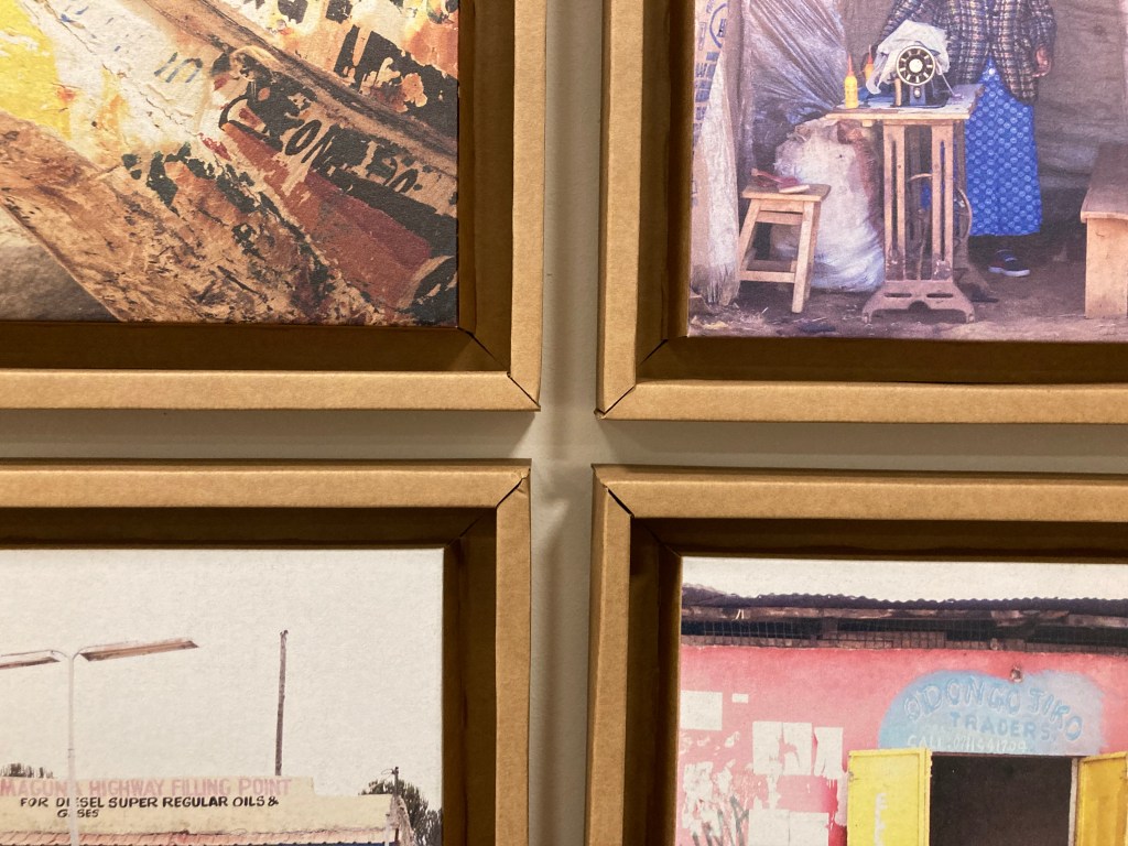 La prima è che si è deciso di accostare molte foto sulle pareti della stanza, messa a disposizione per l’esposizione. In questo modo, sembrano assumere le veci di tessere di un puzzle e, nella testa del visitatore a mano a mano che procede nello spazio espositivo, si va a comporre un’immagine plurima e complessa dell’Africa contemporanea.