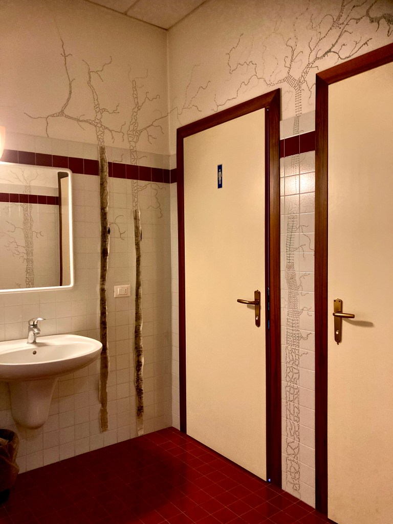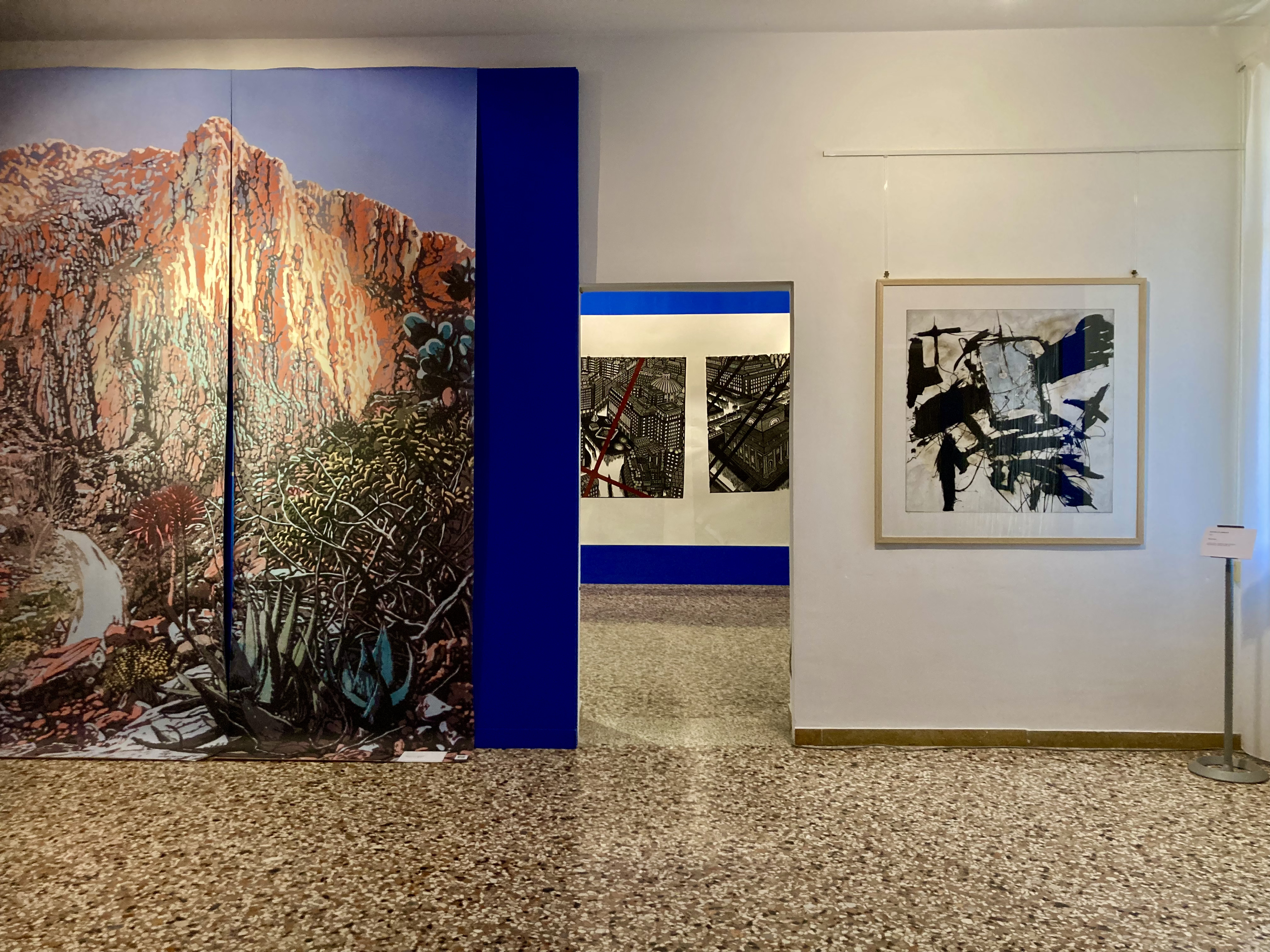 In this exhibition, the works on display are flanked by Wallpaper Art created by the Upper Vicenza-based company Adriani & Rossi. The design of these wallpapers is based on an understanding between the curator Valeria Bertesina and the owner of the company and has given the opportunity to create a contact between the artistic reality and the industrial production reality in which these wallpapers are made. The implementation of the shared vision between curator and craftsman is found in the inspiration of nine artists and their creations. The people who had the opportunity to collaborate in the production, appear among those exhibited in this biennial. The process is realised in this particular reproduction, which is the wallpaper, and accompanies the visitor along the exhibition route, contributing to an immersive environment.
